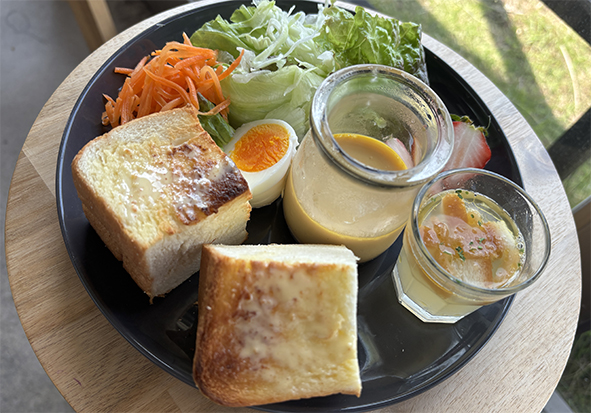 岐阜市川部のルリアンさんの手作り天然酵母食パン ,濃厚卵プリンマーガリン・はちみつ・シナモンシュガー・小倉 からお選びください。岩塩追加できます。